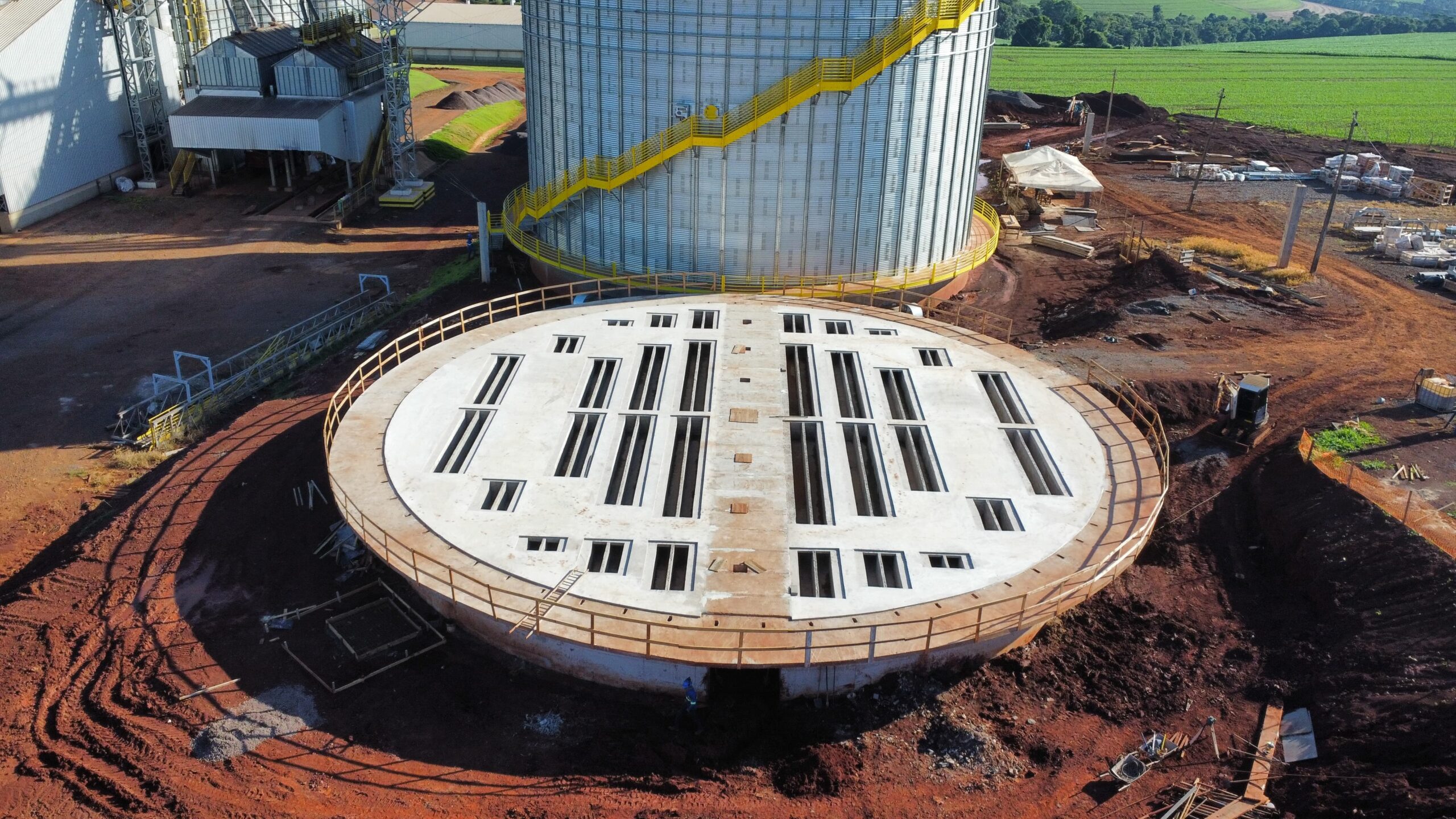Sobre a obra: Cliente: COPACOL Cooperativa Agroindustrial Consolata Área: 1.491,76 m² Localização: PR 180 - Km 308 s/nº - Comunidade Melissa - Cascavel/PR Descrição: Ampliação da Unidade Melissa, construída pelo Grupo Conceito Brasil. Nesta etapa serão executadas mais duas bases para silos, aumentando a capacidade de armazenamento da unidade.