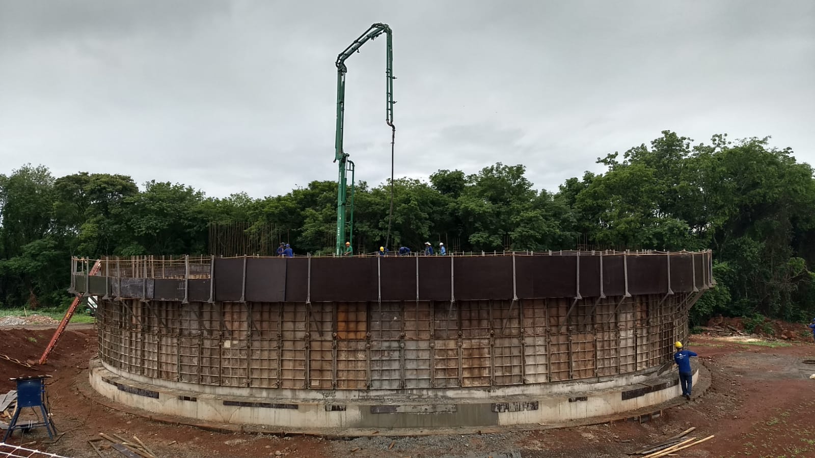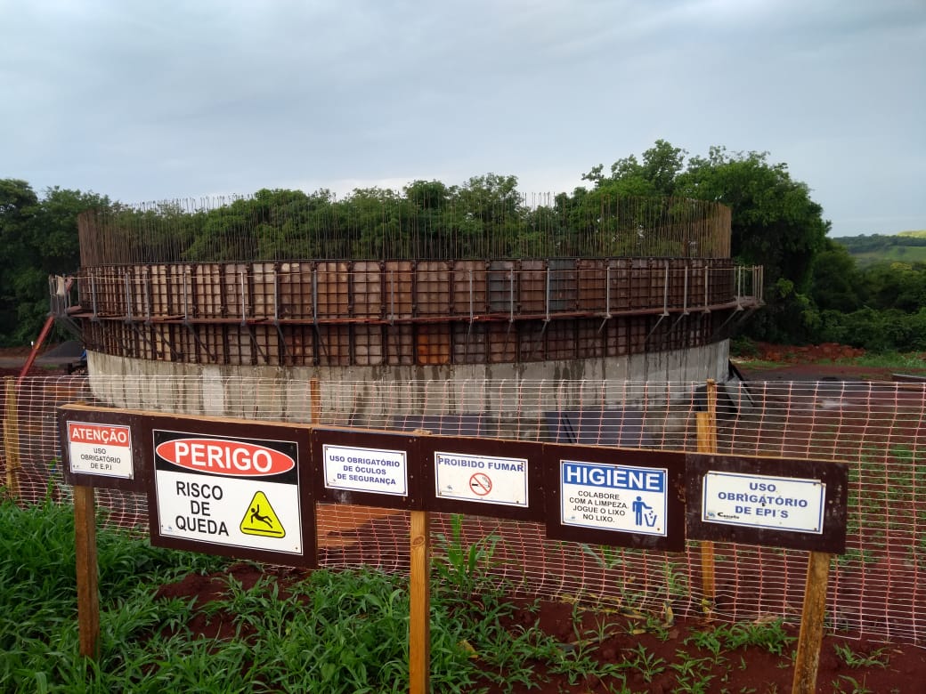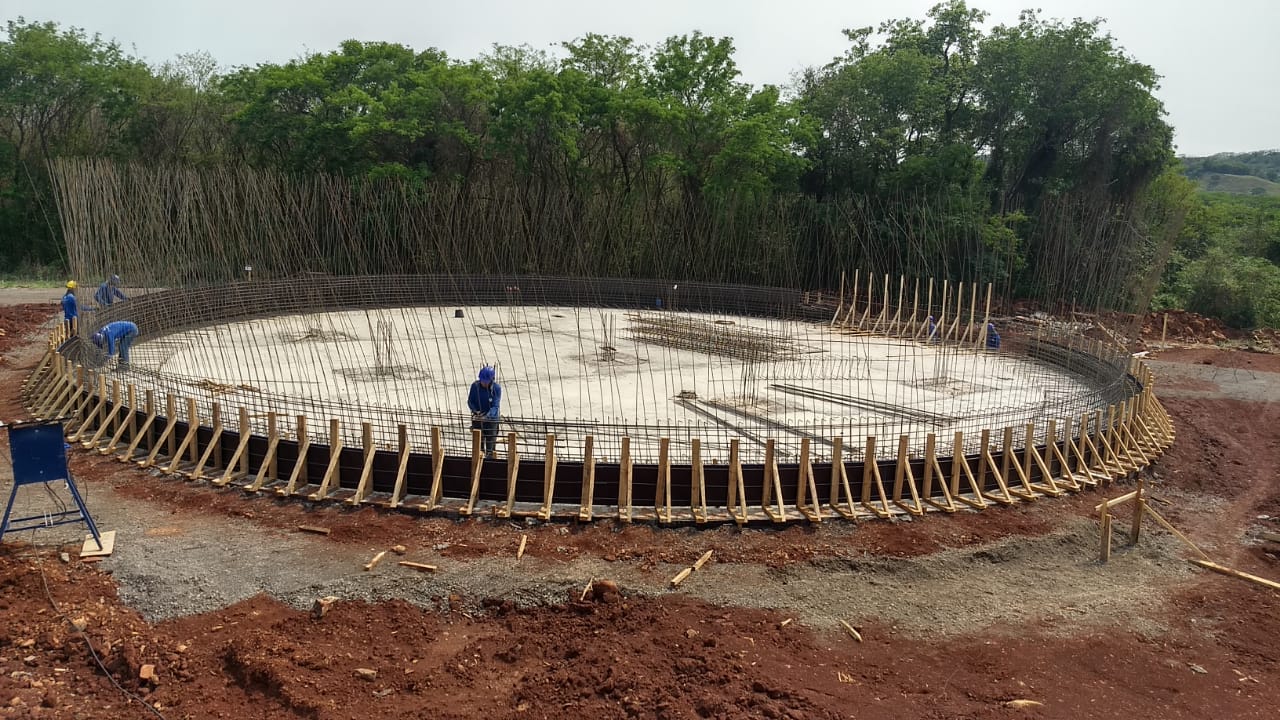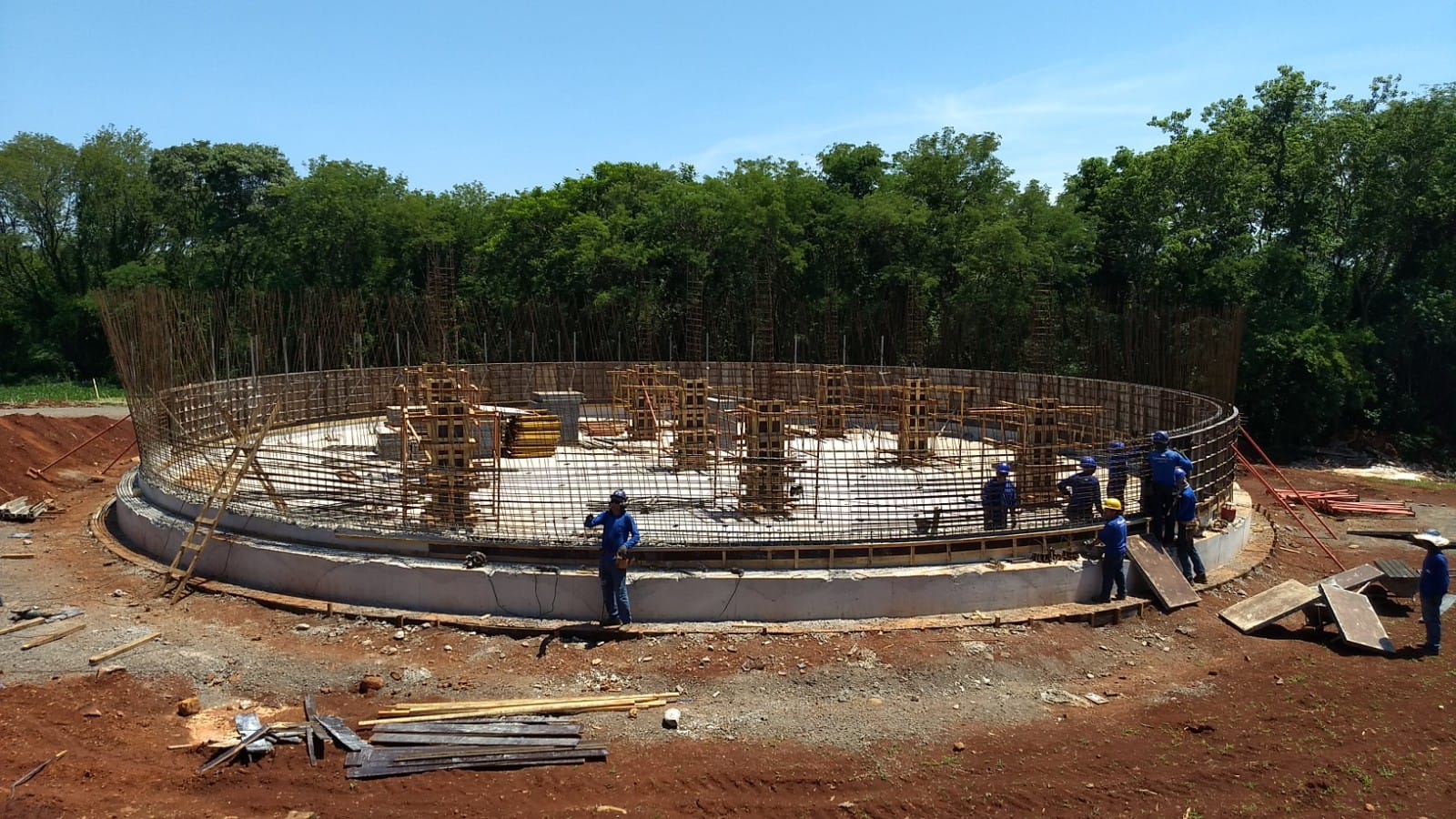 Sobre a obra: Caixa D'Água de 2.000.000 Litros (Reservatório de 23mts de Diâmetro em Concreto Armado) - Friella - Itaipulândia/PR.