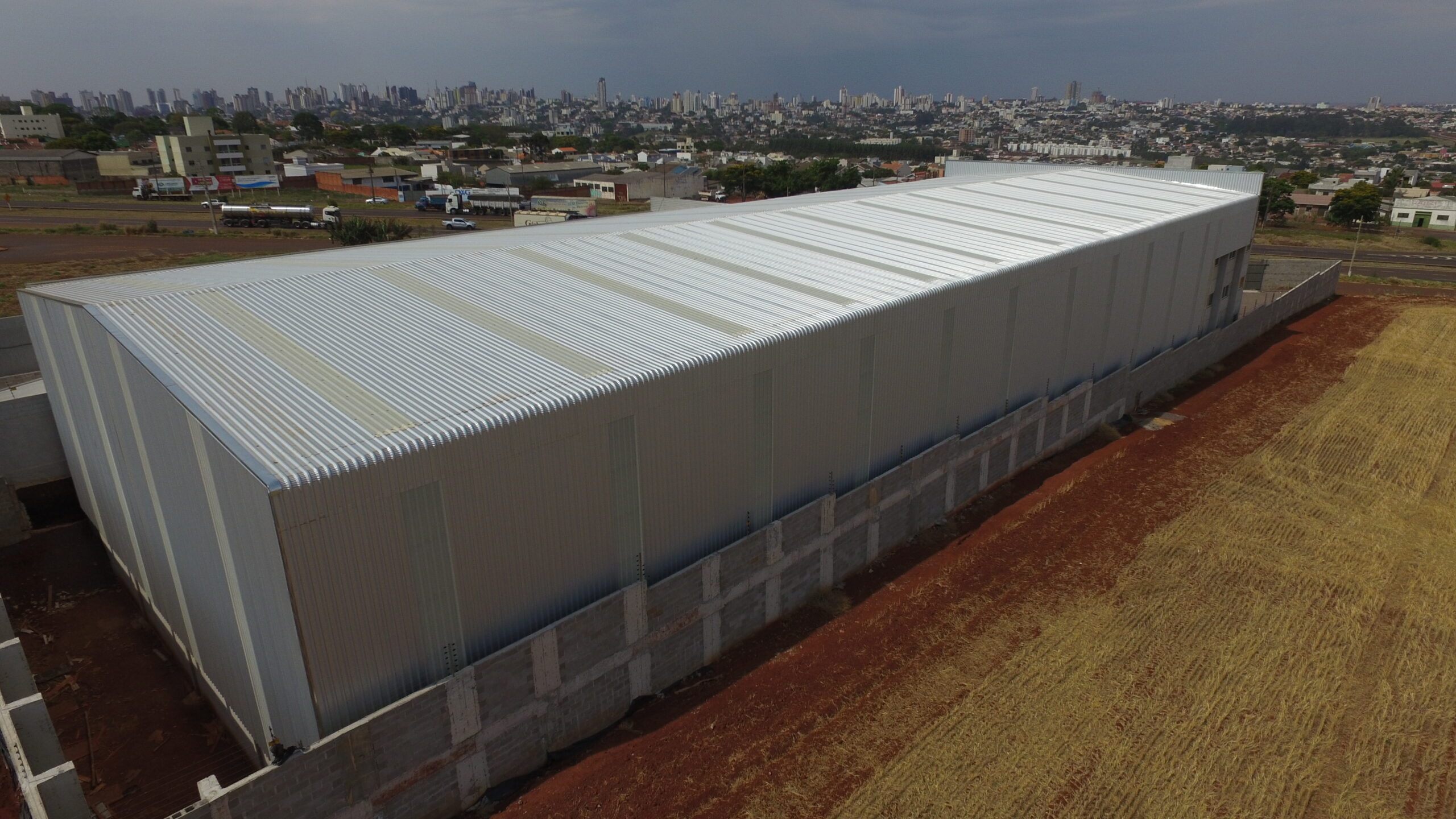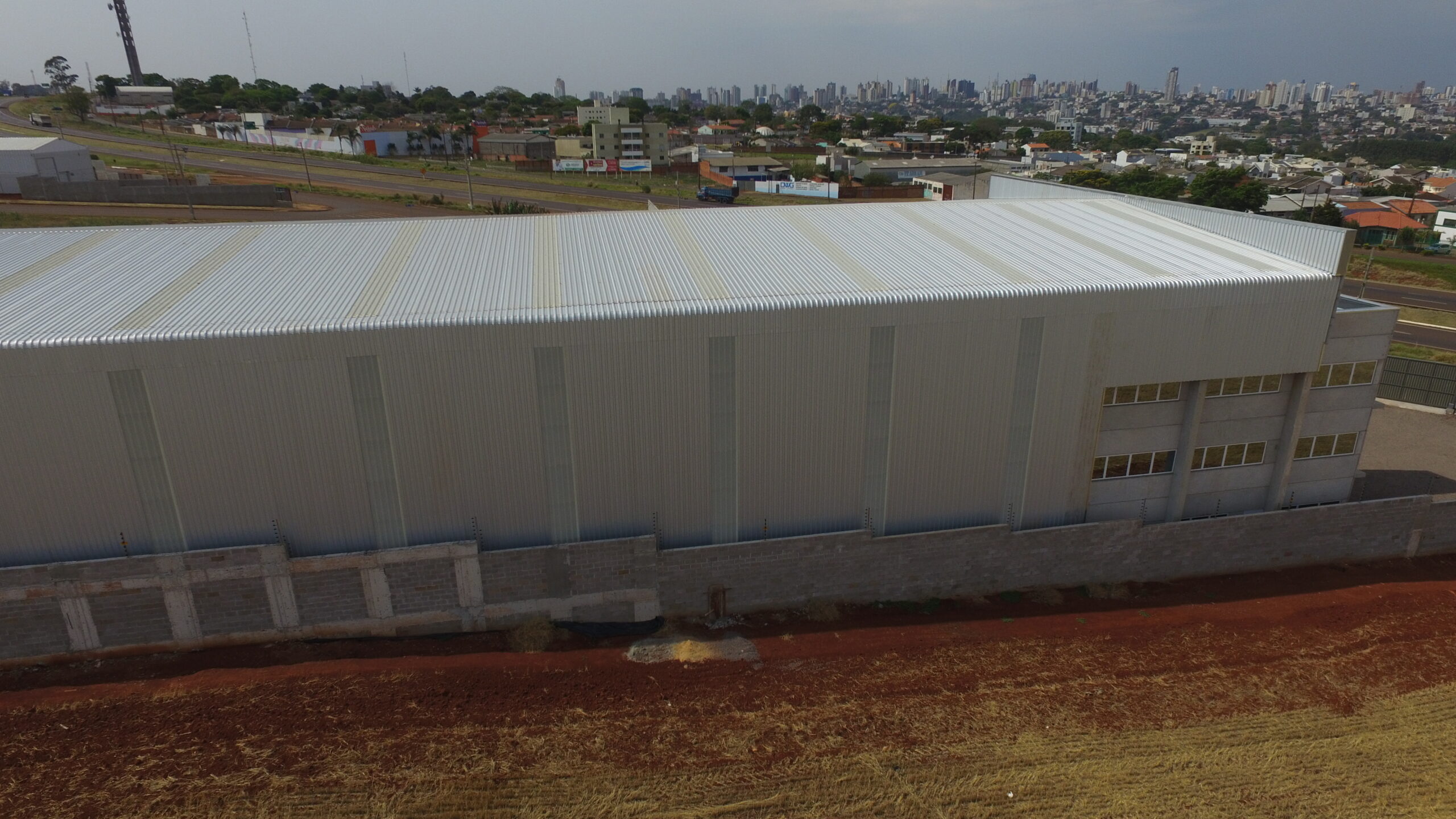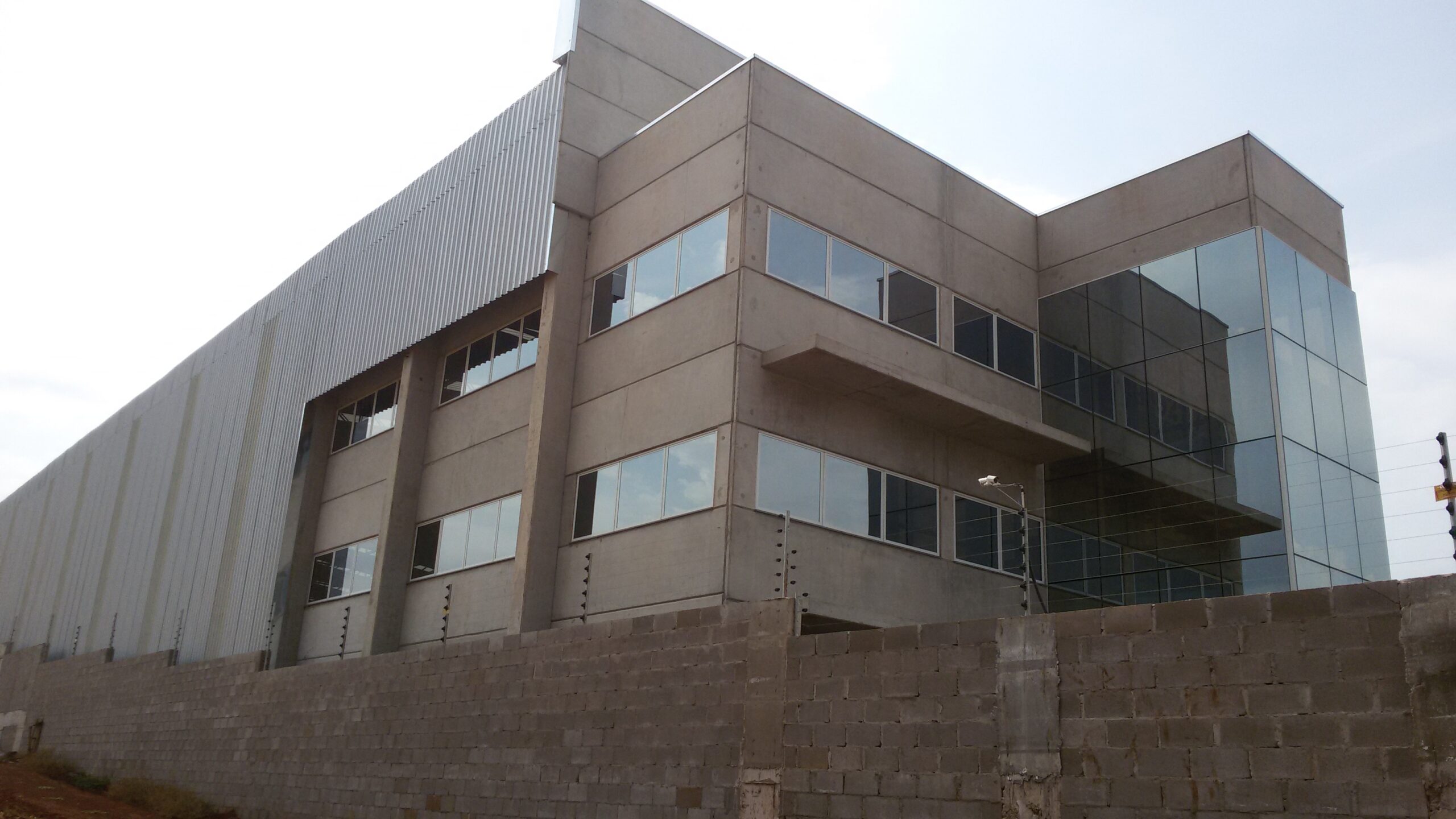 Sobre a obra: Área: 2.580,00m2 Produtos Utilizados: Pilares / Vigas / Laje TT / Painel Contenção / Placas de Fechamento / Escadas / Estrutura Metálica de Cobertura e Fechamento.