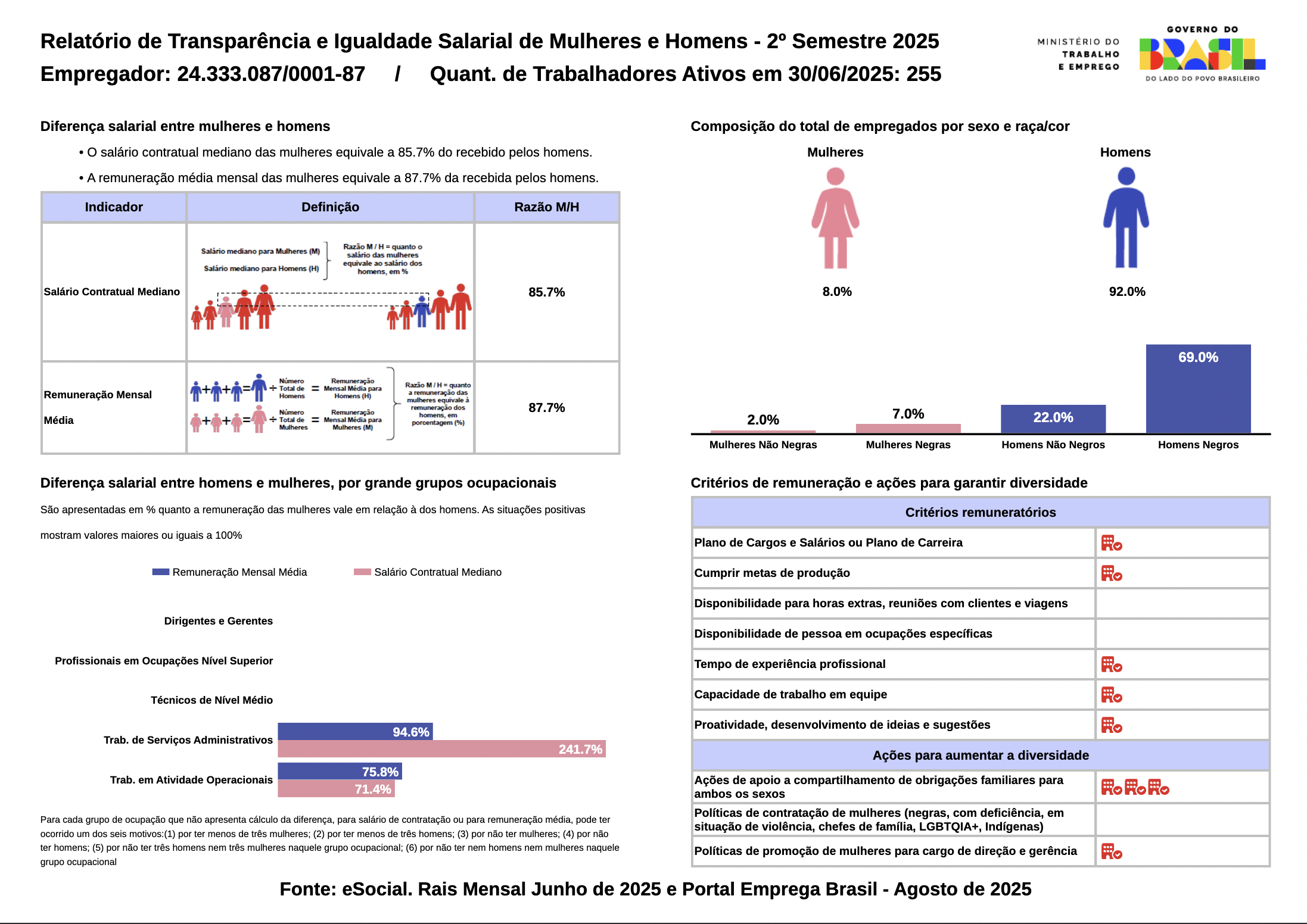 Confira o documento oficial com os dados de transparência e igualdade salarial.